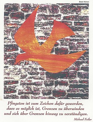 Pfingsten ist das Fest des Heiligen Geistes. In der Apostelgeschichte (Kap. 2) erzählt Lukas, wie die Jünger mit dem Heiligen Geist erfüllt werden, den Jesus ihnen als Begleiter bei seinem Abschied zugesagt hatte. Die Auswirkungen sind überraschend. Die Menge der Menschen, die sich zum Laubhüttenfest in Jerusalem versammelt hatten, nimmt an, die Jünger seien schon am frühen Morgen betrunken. Sie haben begonnen, von Jesus und seinen Taten zu reden und jeder Zuhörer und jede Zuhörerin versteht, was sie sagen. Das ist mehr als erstaunlich, denn aus fast allen damals bekannten Ländern waren Juden zum Fest in die Stadt gekommen. Ein buntes Gemisch von Sprachen war überall zu hören. Die Jünger aber versteht jeder, als würden sie in der eigenen Muttersprache reden.
