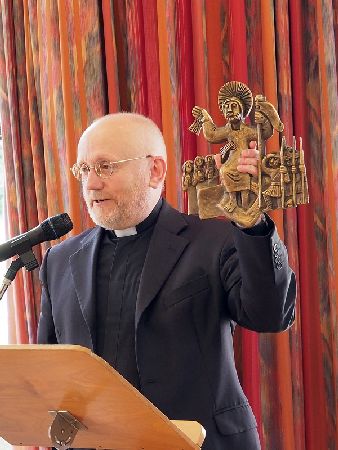 In seinem Grußwort erwähnte der Bürgermeister, dass viele der Elsener evangelischen Christen als Flüchtlinge hergekommen sind, und rief dazu auf, auch heute die Flüchtlinge, die zu uns kommen, zu beherbergen. Auch Pfarrer Brinkmann ging in seinem Grußwort darauf ein. Als Geschenk überreichte er ein Bronzerelief mit der Darstellung der Auferstehung.
