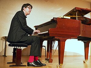 Bernd Düring gestaltete die eingängigen Melodien schwungvoll, schmissig und mit vielen Jazzelementen. Seine roten Socken waren ein Hingucker, lenkten aber nicht von seinem erstklassigen Spiel am Flügel ab.