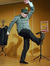 So wurde das Schützenwesen auf’s Korn genommen und Eckhard Radau machte sich Gedanken über die geographischen Gegebenheiten, kulinarischen Genüsse und Namen unserer Region. Zudem erteilte er uns eine amüsante, wenn auch nicht erhellende Lektion, wie die Löcher in den Käse kommen und was für Folgen solche Überlegungen haben können.