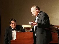 Dort erwartete die Gäste die dritte Besonderheit: Das Programm kam nicht aus den Reihen der Mitarbeiter. Das Kabarett-Duo Bernd Düring/Eckhard Radau trat für uns auf und unterhielt auf großartige Weise mit einem Querschnitt seiner Programme der vergangenen 32 Jahre unter dem Motto „Das Beste ist das Schönste“.