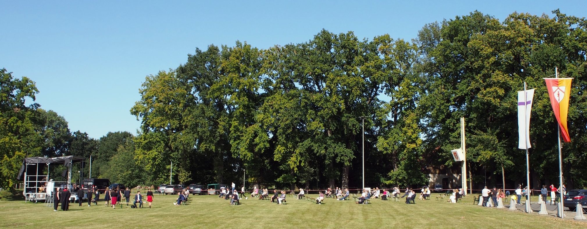 … und das fing damit an, dass diese nicht wie gewohnt im Frühjahr, sondern erst im September stattgefunden haben. Nicht nur dieser Termin war der Corona-Pandemie geschuldet, auch fast alle weiteren organisatorischen Überlegungen zu den drei Gottesdiensten standen unter diesem Zeichen: Wie kann man es den Konfirmand*innen und ihren Familien ermöglichen, als Familiengemeinschaft an diesem wichtigen Ereignis teilzunehmen? – „Das geht aufgrund der Abstandregeln nur draußen, das geht nur auf einem großen Platz.“, befand das Presbyterium und entschied, dass die St. Hubertus-Schützenbruderschaft gefragt werden sollte, ob der Schützenplatz für die Konfirmationsgottesdienste genutzt werden könne. Diese Idee stieß zunächst nicht überall auf uneingeschränkte Zustimmung.