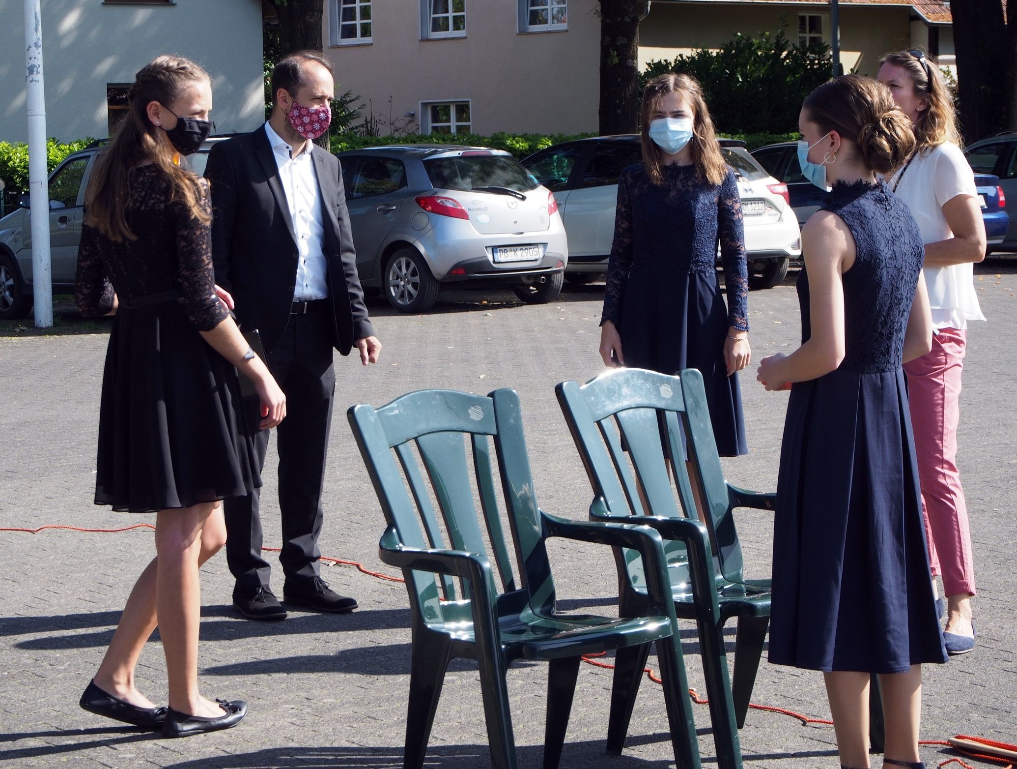 Abstandhalten beim Konfirmationssegen, zu dem das Handauflegen eine wichtige Handlung ist – wie soll das gehen? Hier wurde die Idee des Segenspaten gefunden: Jede*r Konfirmand*in durfte eine Person wählen, die stellvertretend die Hand zum Segen auflegte und das Konfirmationskreuz umhängte. Diese Idee wurde als sehr schön empfunden, so dass sie vielleicht auch in kommenden Jahren übernommen wird.
