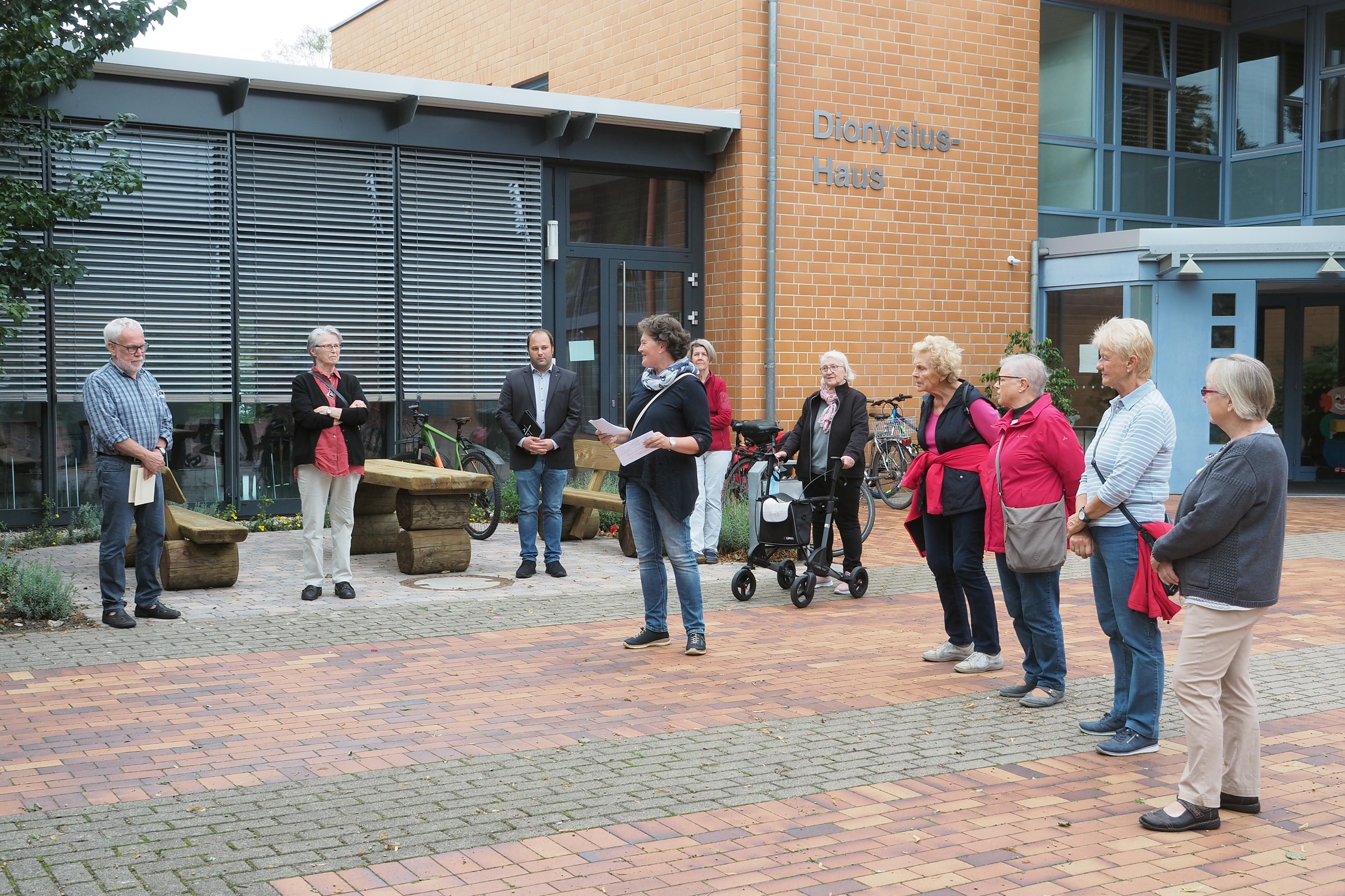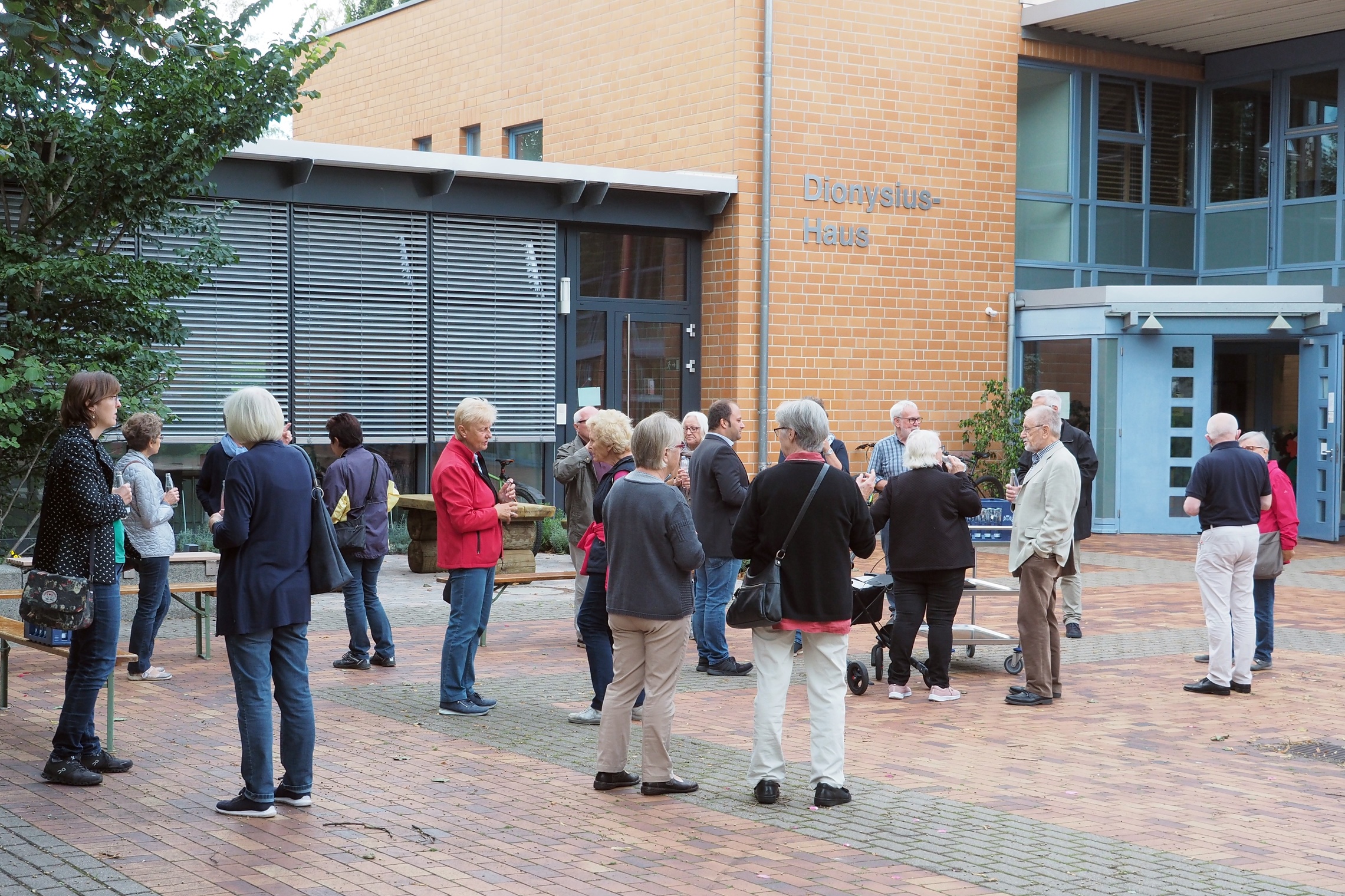 Der Pilgerweg endete – auch hier unter den gegebenen Einschränkungen – vor dem Dionysius-Haus mit dem kleinen Umtrunk. Es gab Mineralwasser, natürlich für jeden eine eigene Flasche.