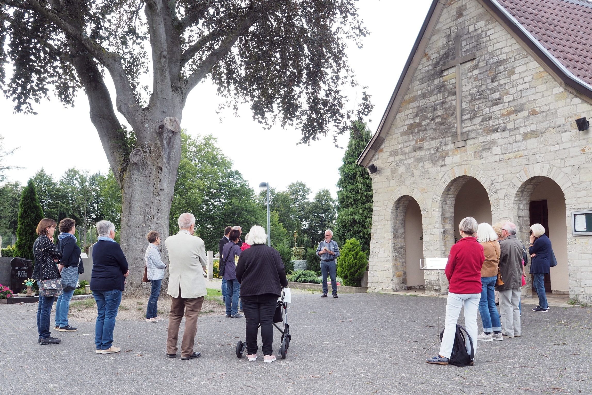 An der Friedhofskapelle ging es um den Glauben an die Auferstehung. Die Gewissheit, dass jedes Leben auf Sterben hinausläuft, hat im Laufe der Geistesgeschichte zu vielen und unterschiedlichen Deutungen des Todes geführt. Nahezu alle zeigen, wie sehr Menschen darauf angewiesen sind, angesichts des sicheren Todes nicht in Verzweiflung zu verfallen. Den Tod durch Weggucken zu ignorieren, ist auf lange Sicht keine gute Lösung. Über ihn hinaus eine Perspektive zu haben, ist Hilfe zum guten Leben. Aber ist das vielleicht doch nichts anders als ein frommer Wunsch? „Christ ist erstanden…“ – diese Osterlied markiert nicht nur eine „biografische Notiz“ für den Mann aus Nazaret, es ist auch Ausdruck der Hoffnung auf die Zusage, die Jesus Christus uns gibt.