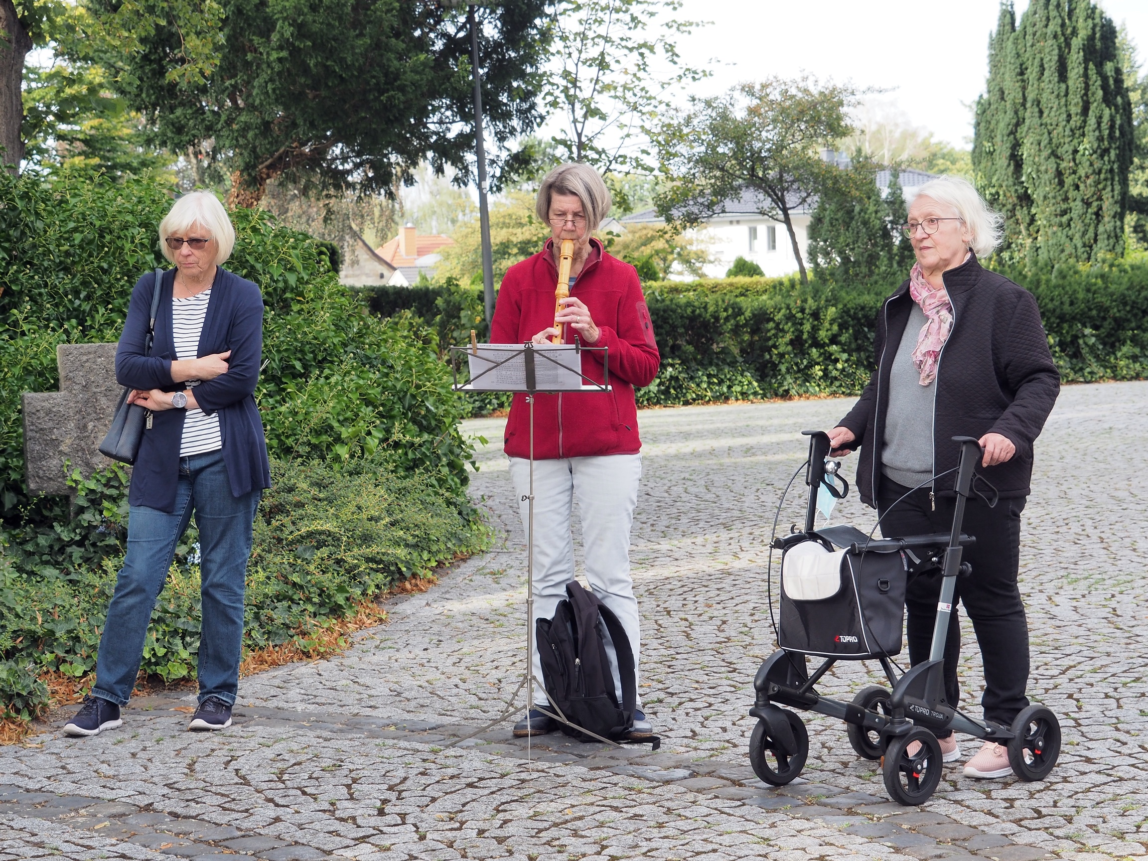 Wegen der pandemischen Bedingungen fand der ökumenische Pilgerweg 2020 ausschließlich im Freien, mit dem gebotenen physischen Abstand und ohne gemeinsames Singen statt. Katrin Spehr las die Texte ausgesuchter Lieder vor. Gerburg Barckow brachte auf der Flöte – sozusagen stellvertretend für den Gesang – die Musik ins Spiel.