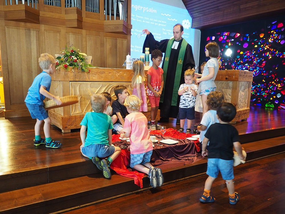 Der Tag begann mit einem Familiengottesdienst, der zugleich als Auftakt des KiTajahrs der ARCHE diente. Mit viel Bewegung und dem Gleichnis vom Großen Gastmahl konnte hier bereits deutlich werden, wie bunt, aufregend und offen unsere Gemeinde feiert.