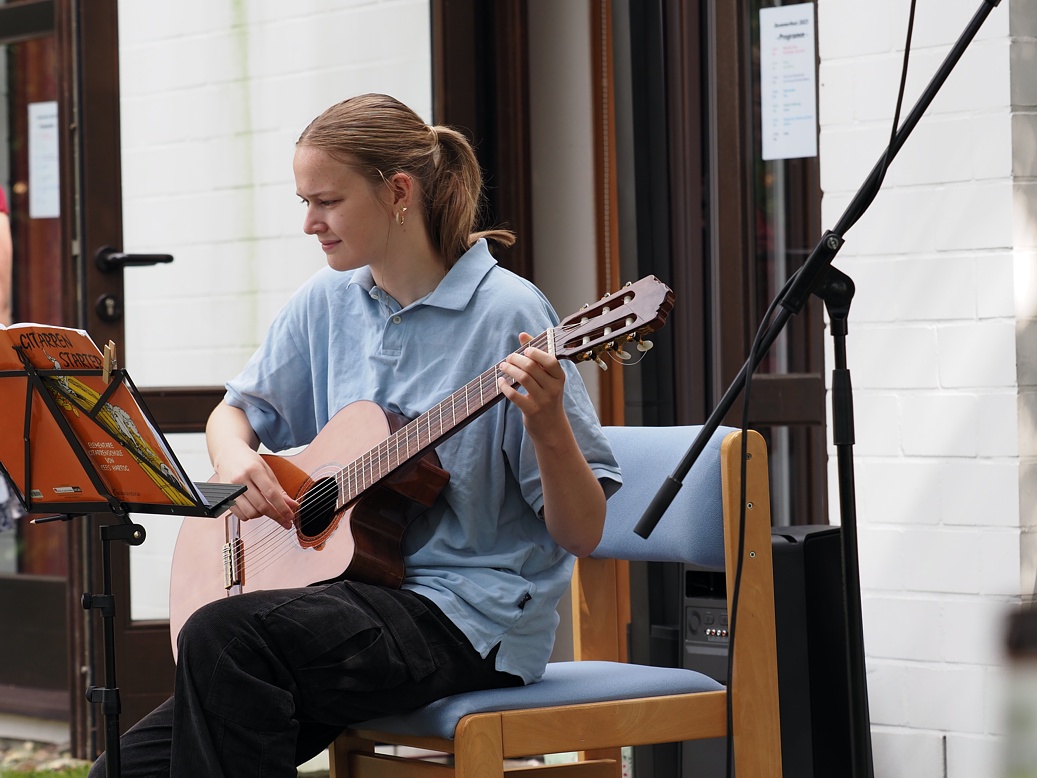 Für Unterhaltung war natürlich auch gesorgt. Die Kinder konnten sich in einer betreuten Spielecke vergnügen mit Geschicklichkeitsspielen, Legosteinen und einer Hüpfburg. Die Erzieherinnen der ARCHE boten Kinderschminken und Mitmachtänze an. Pfarrer Klemme las lustige Geschichten vor. Hauke Friedrich demonstrierte Karate. Alix de Witt unterhielt die Gäste mit ihrem Gitarrenspiel und der Chor präsentierte eine Auswahl geistlicher Lieder und weltlicher Hits. Den Abschluss gestaltete Kathrin Junge mit offenem Singen.