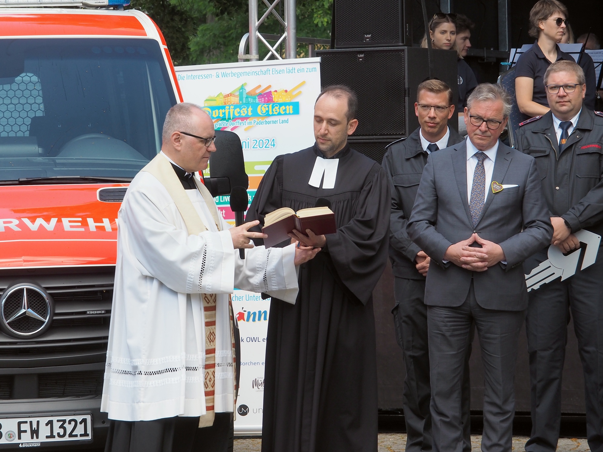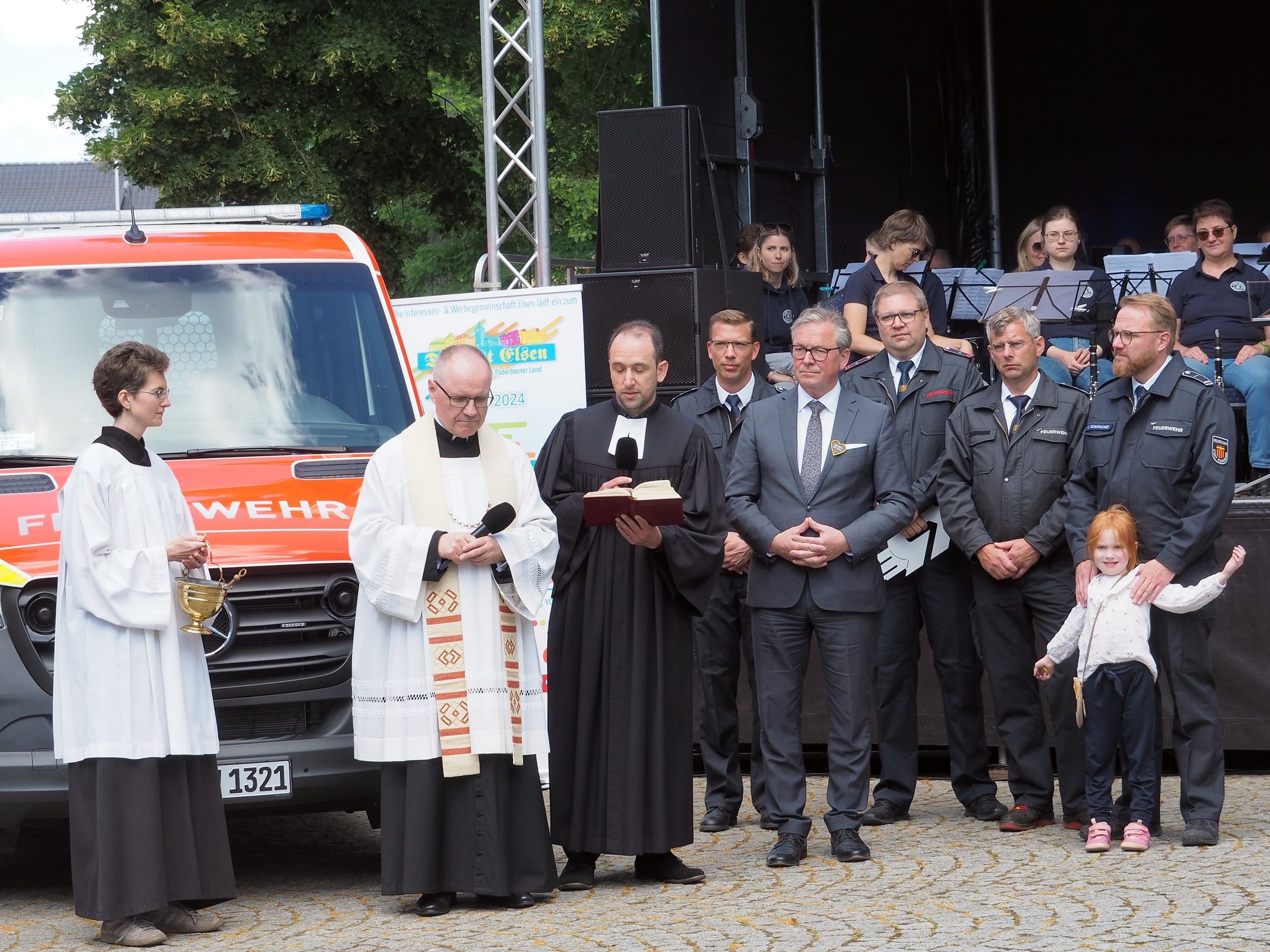 Nach dem Gottesdienst wurde ein neues Fahrzeug der Feuerwehr gesegnet.