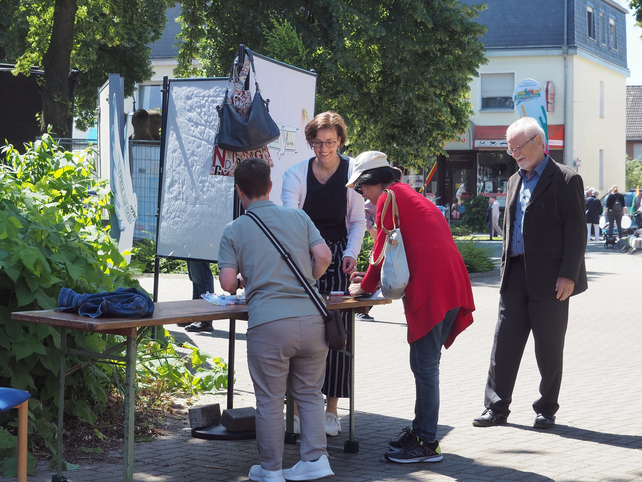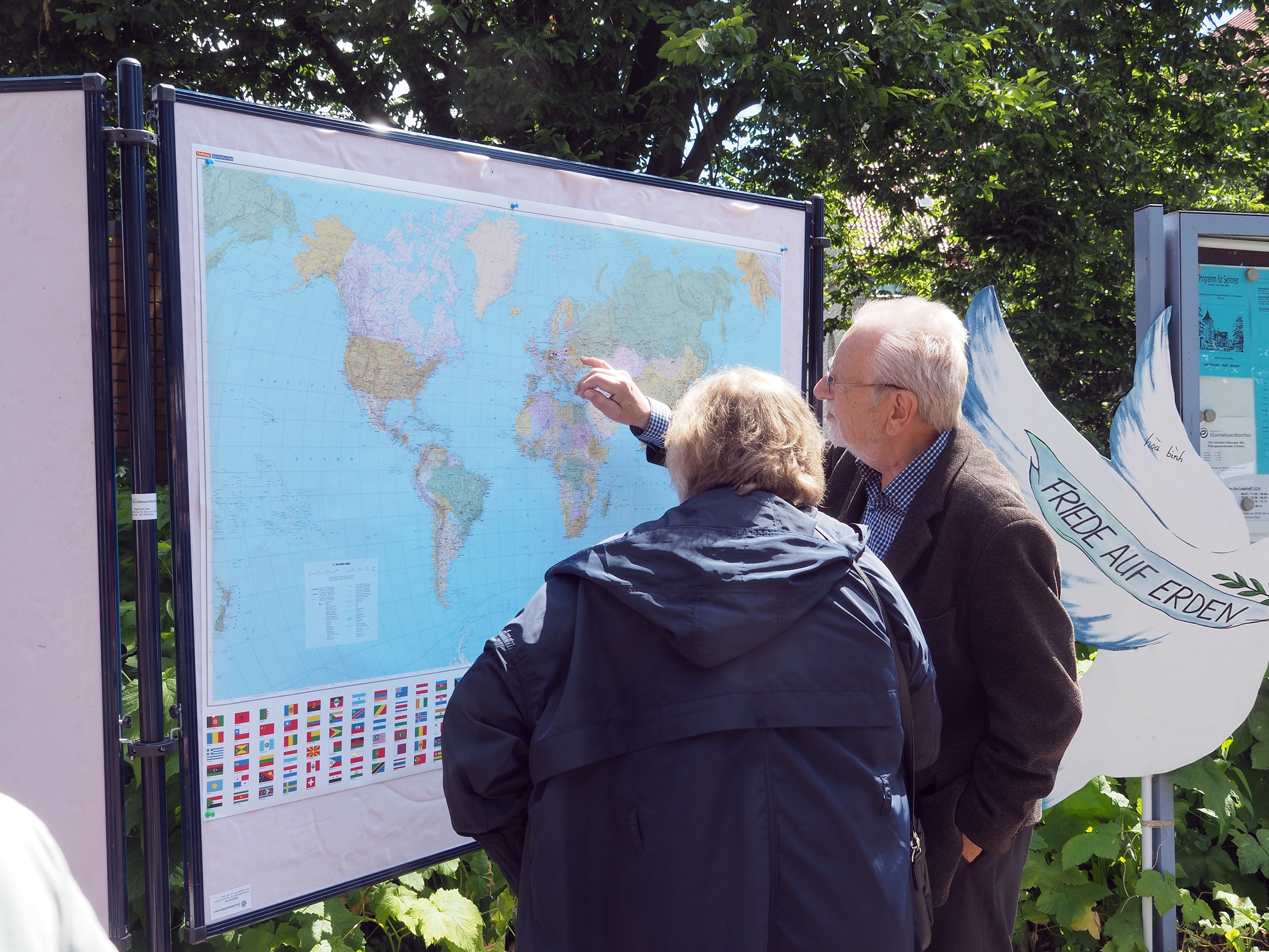Die Friedensgruppe hatte einen Stand, um mit den Besucher:innen ins Gespräch zu kommen über die Frage: „Was ist Frieden?“
