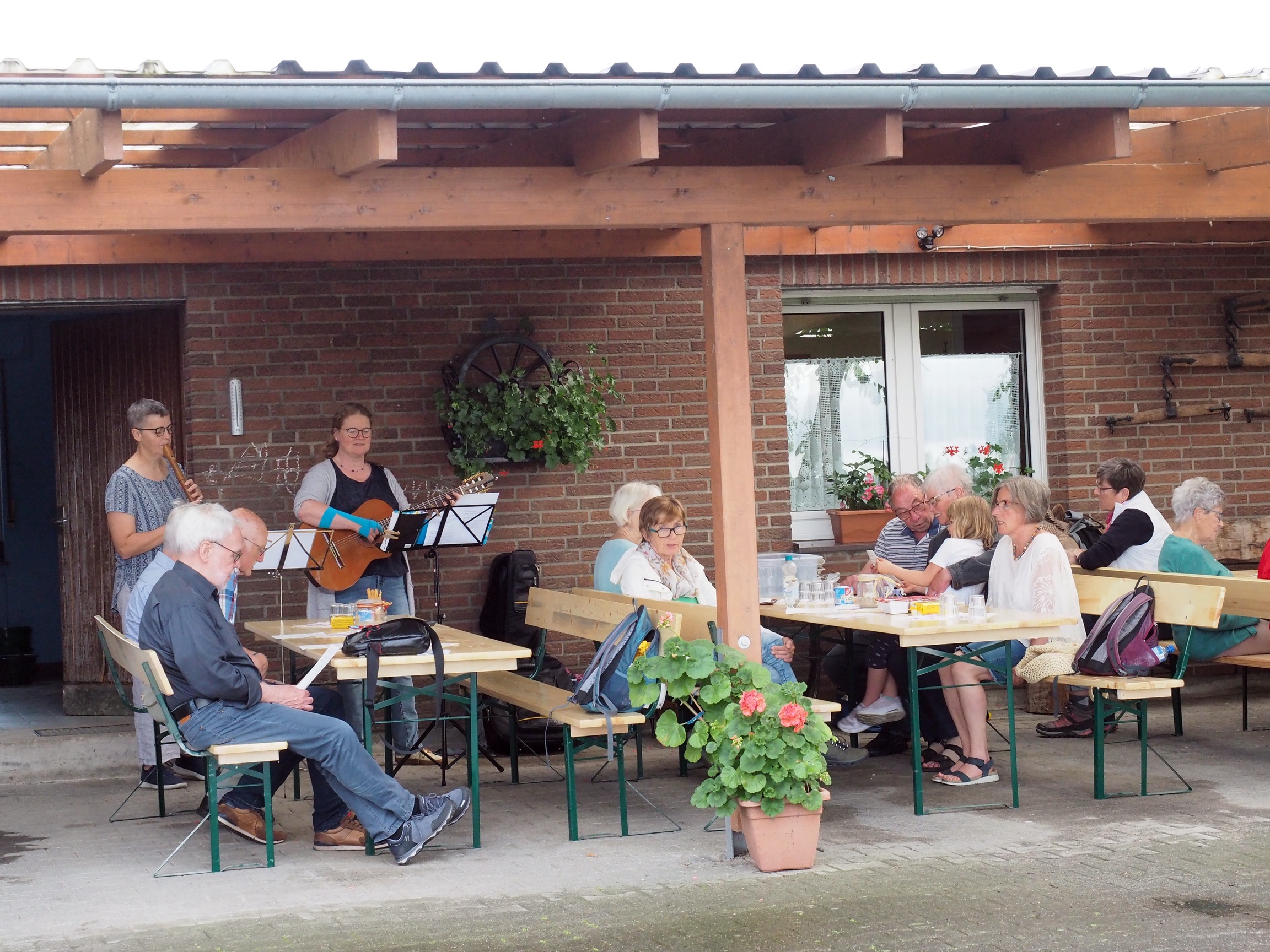 Kathrin Junge und Hiltrud Petzke sorgten für die musikalische Gestaltung des Ökumenischen Pilgerwegs 2024, indem sie an den vier Stationen und mit dem Segenslied zum Abschluss den Gesang der versammelten Gemeinde leiteten.