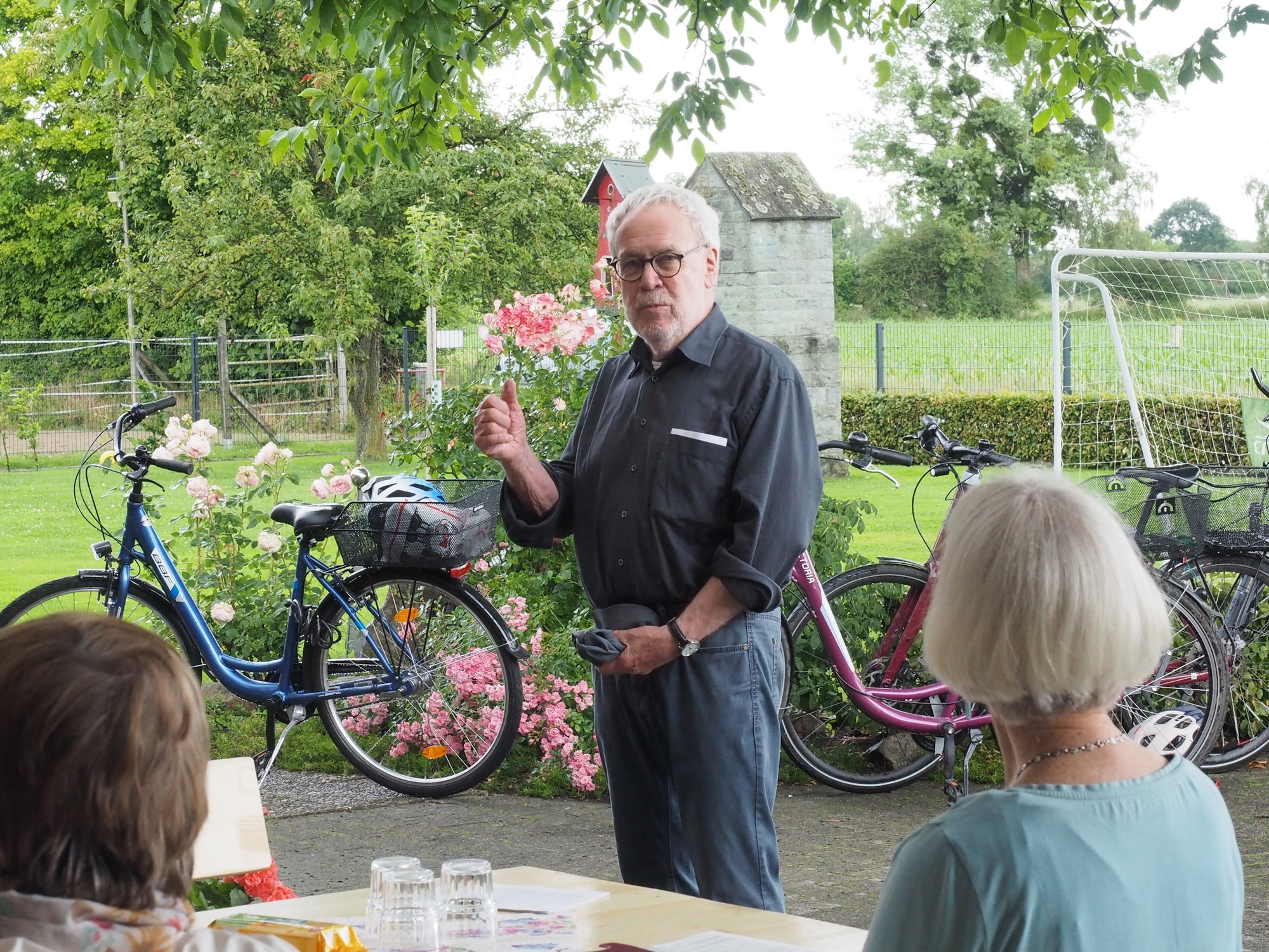 Die vierte Station griff Verse aus dem 15. Kapitel des Johannesevangeliums auf. Da ist vom Bleiben die Rede. Theo Breul führte dazu aus, dass dieses Bleiben nicht ein lokales Verharren, sondern eine innere Standfestigkeit meint, die dem Lebensalltag sich anpasst, aber immer ihren Mittel- und Ankerpunkt darin hat, die Liebe Gottes, die uns in Jesus Christus erfahrbar ist, im eigenen Leben weiterzugeben.