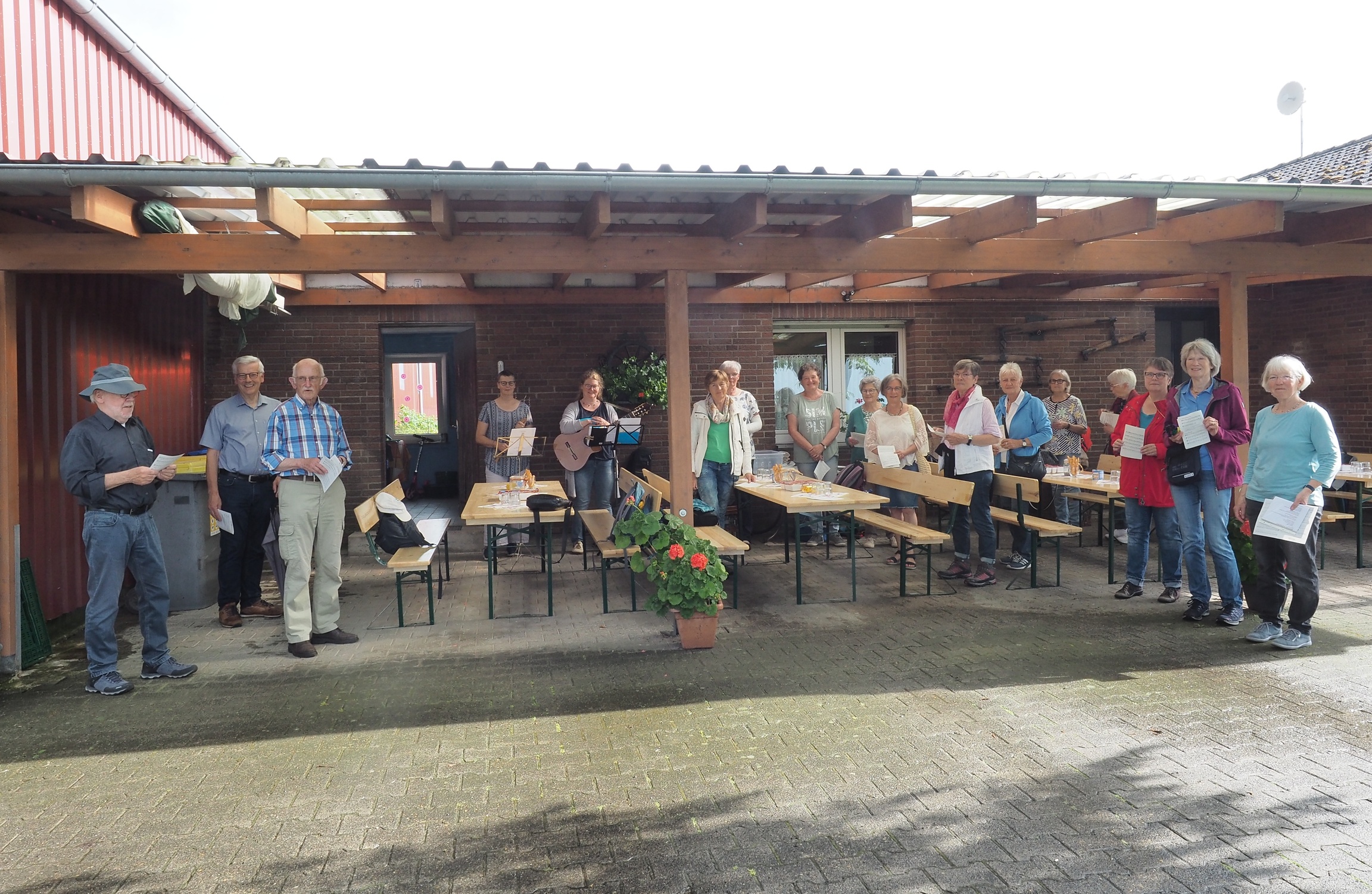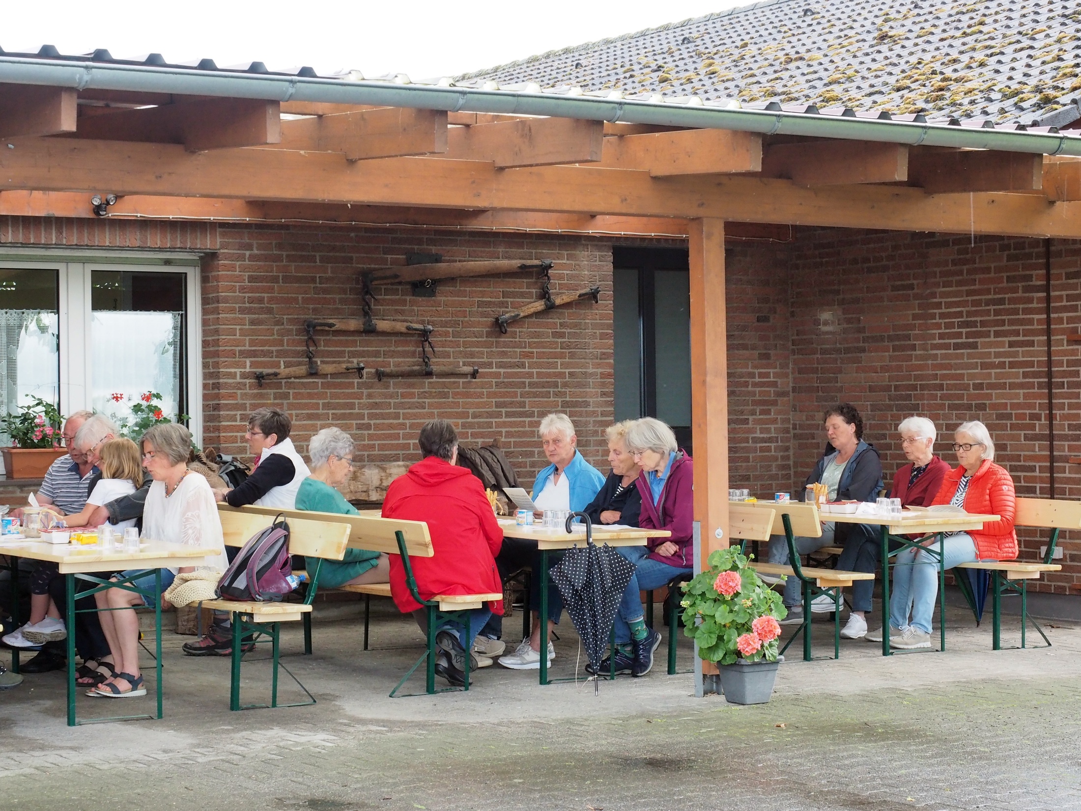 Ein Weg sollte es werden – einer, den man wirklich geht. Daraus wurde nichts. Das Wetter spielte nicht mit. Immer wieder setzte Regen ein. Gut, dass sich die ca. 20 Teilnehmenden auf der Hofstelle Altrogge am Scharmeder Stadtweg treffen konnten. Da gab´s die Möglichkeit, unter sicherem Dach die vier Stationen in Gedanken abzuschreiten, die für den Pilgerweg 2024 vorgesehen waren.