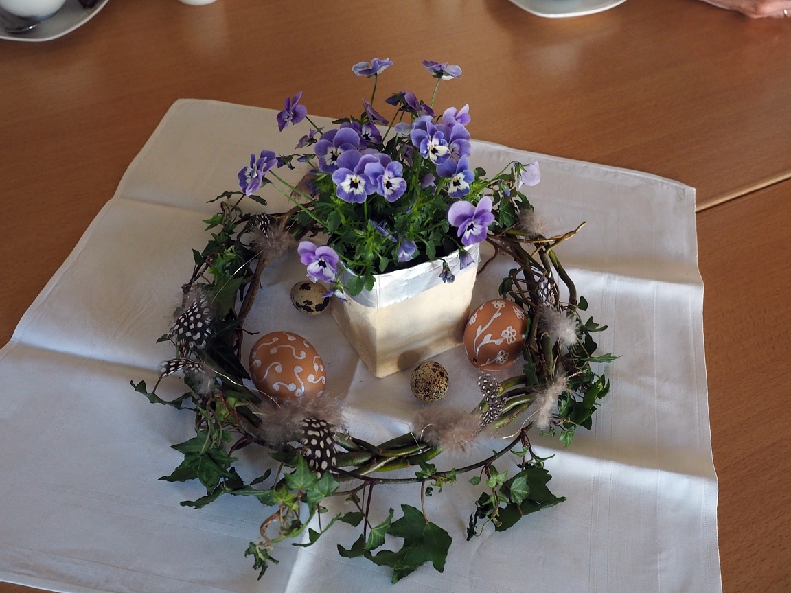 Pfarrerin i.R. Düpree signierte die Osterkerze, die dann am Osterfeuer entzündet und unter Gesang in die Kirche getragen wurde. Nach dem Gottesdienst war die Gemeinde zum Frühstück in das österlich geschmückte Gemeindehaus eingeladen. Für Brot, Eier und Getränke war gesorgt, alles Weitere hatten die Besucher:innen mitgebracht und teilten es untereinander.