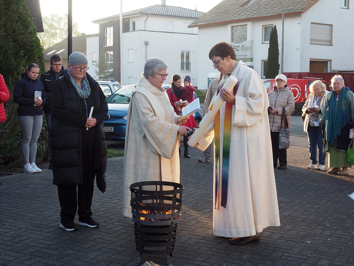 Der Osterfrühgottesdienst um 7 Uhr begann am Osterfeuer vor der Kirche.